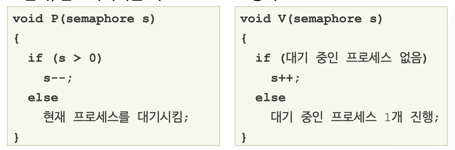 - 두 기본연산 p와 v에 의해서만 사용됨