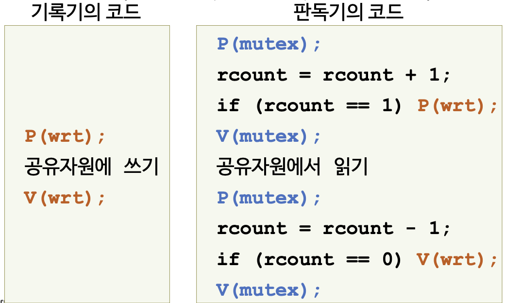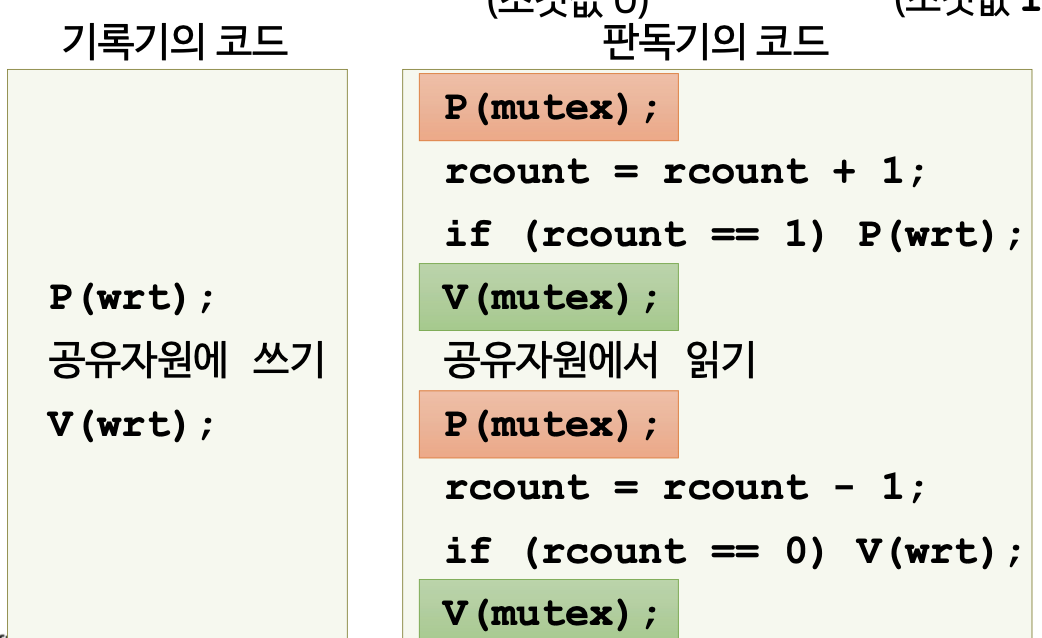 여러 협력 프로세스 사이에 공유자원을 두고 판독기와 기록기의 상황을 다루는 문제