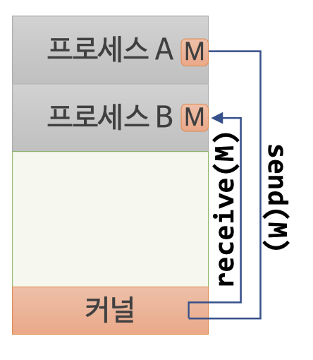 - 협력 프로세스가 메시지를 주도 받는다: send(), receive(), 시스템 호출