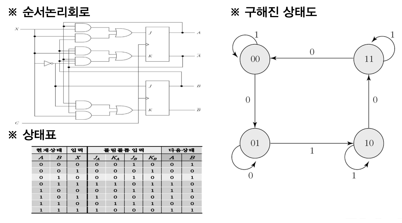 - 즉 회로 동작의 시간적 변화를 상태-현재상태-다음상태로 표현해야 함