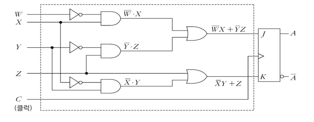 - 왜냐하면 D 플립플롭과는 달리 JK 플립플롭을 가진 순서논리회로는 다음 상태가 입력방정식만으로 구해지지 않는다.