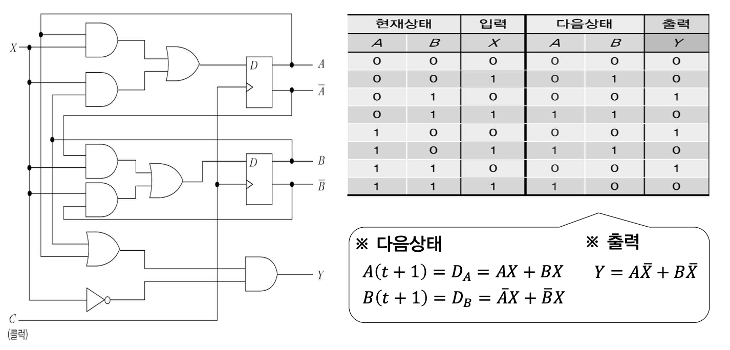 - 그러나 시간지연요소인 플립플롭이 포함되어 있으므로 회로의 시간적 변화를 고려해야 함