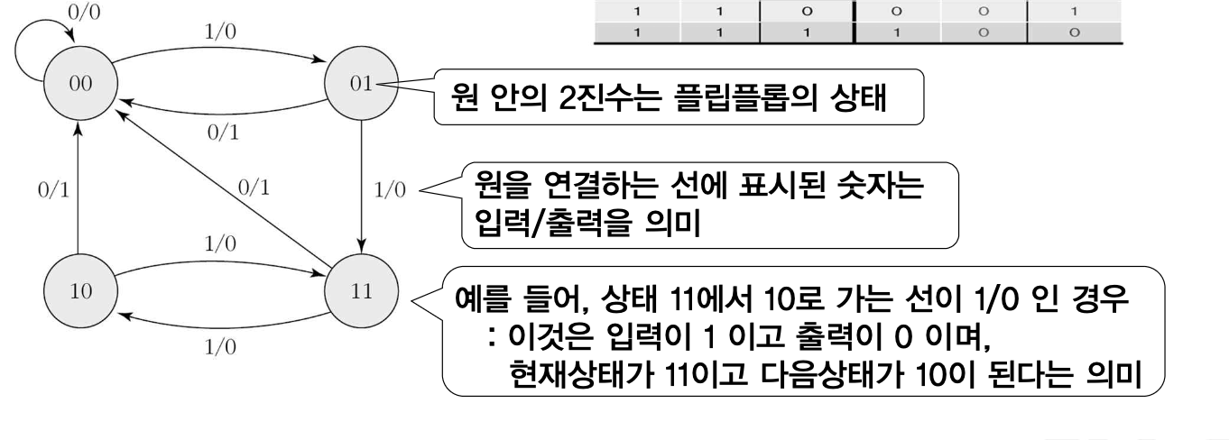 따라서 순서논리회로의 동작은 입출력 상태와 플립플롭의 상태에 따라 결정되므로, 플립플롭의 상태와 입출력 상태의 시간적 변화를 적절히 나타내야 한다.