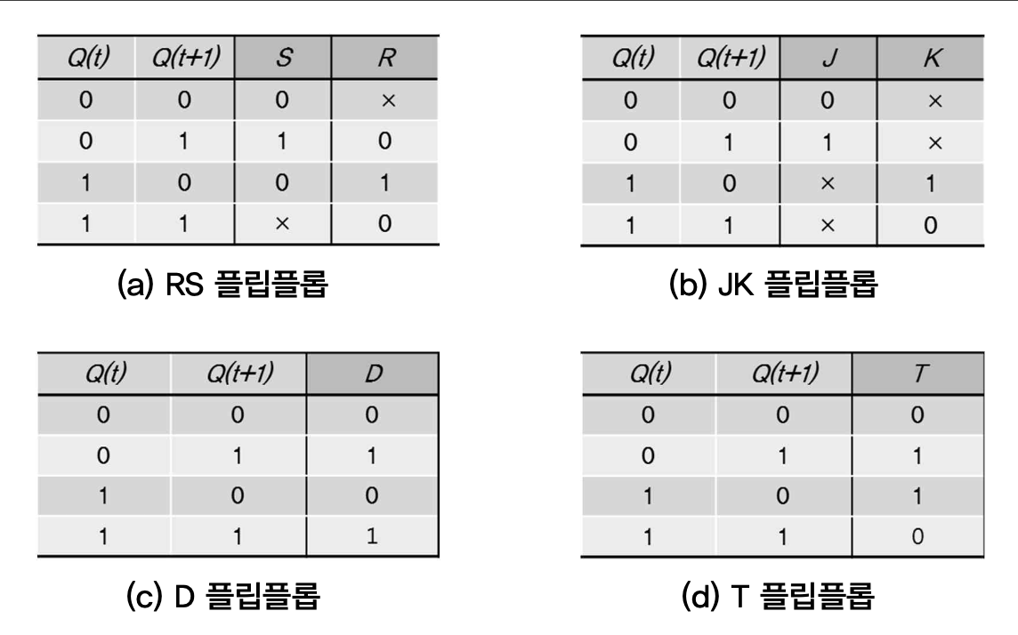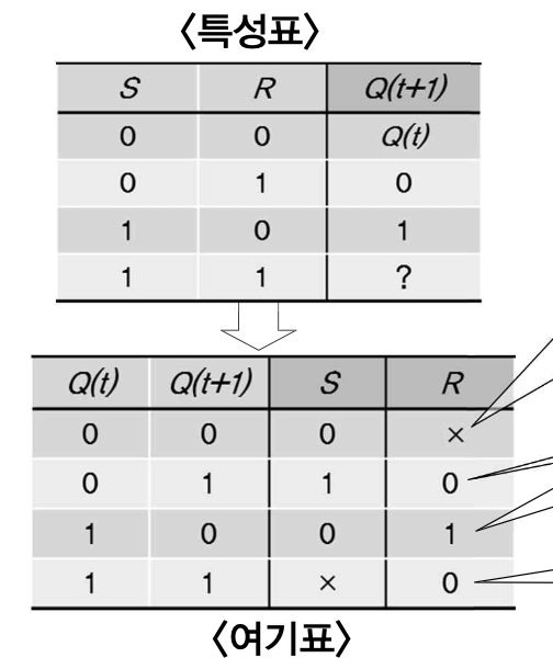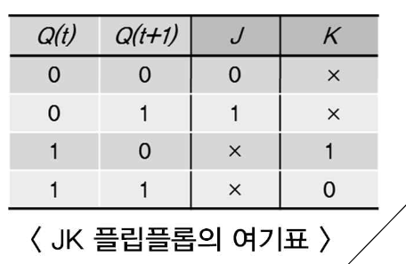 -> 여기서 현재상태에서 다음상태로의 변화를 일으키는, 즉 F/F의 입력조건의 리스트를 F/F의 여기표라 한다.