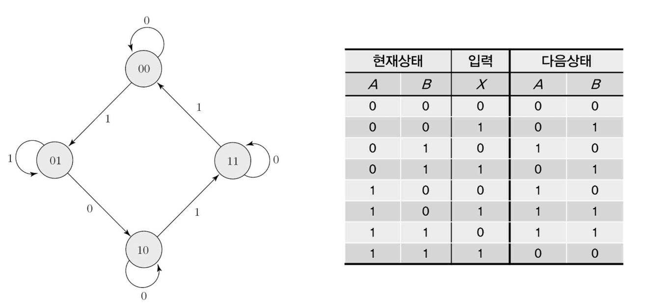 - 현재상태와 다음상태를 알고 있다. (상태표에 의해)