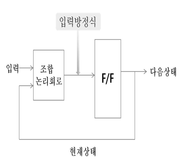 -> 입력방정식은 조합논리회로의 출력(외부 입력과 F/F의 현재상태에 의해 결정됨)