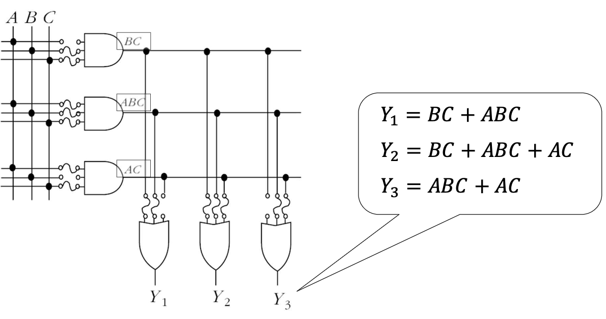 - 3개의 AND 게이트를 이용하여 프로그래밍할 수 있다.