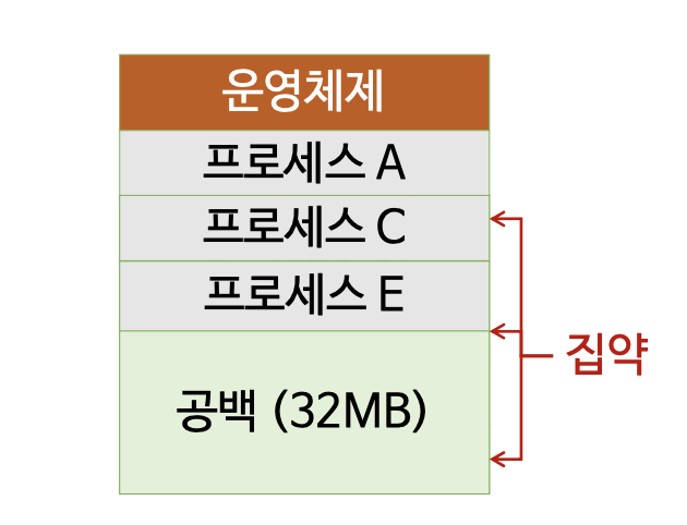 집약: 메모리 내의 모든 공백을 하나로 모아 외부 단편화 해결