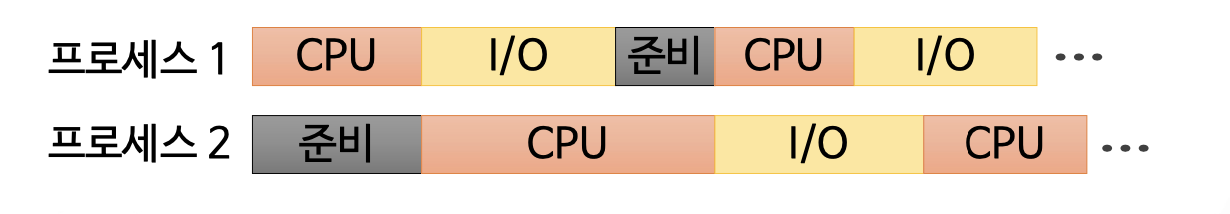 CPU 연산과 입출력을 동시에 함으로써 CPU 이용도와 시스템 처리량 증가