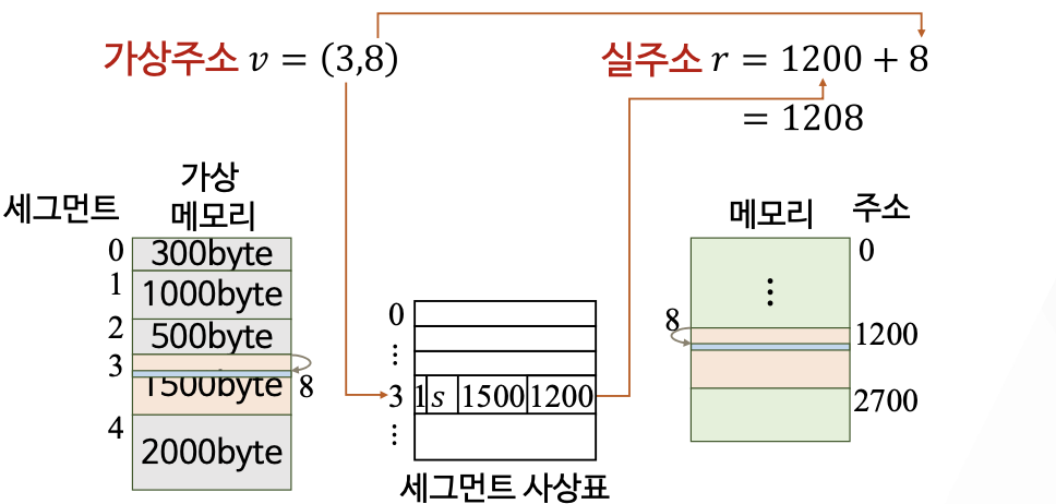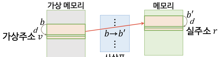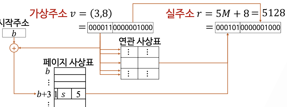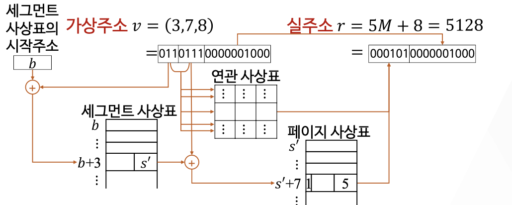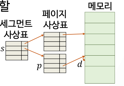 - 가상주소 v = (s, p, d) // s= 세그먼트 번호, p = 페이지 번호, d = 페이지 내 변위