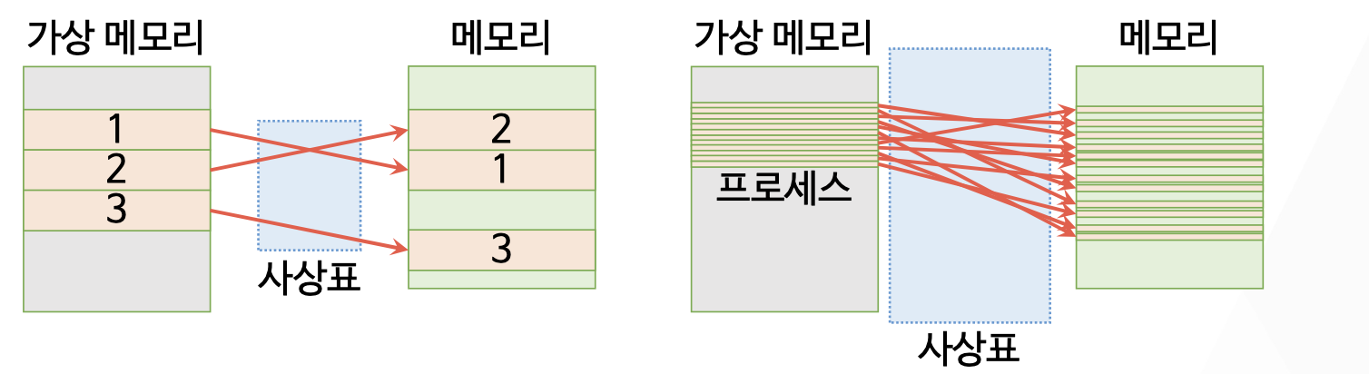 주소 변환이 바이트나 워드 단위로 이뤄지면 변환에 필요한 정보량이 너무 많아 비효율적이라는 문제가 생긴다.