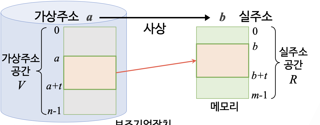가상주소 a이지만 실제 주소는 b이므로 사상이 필요