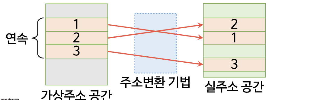 - 인위적 연속성: 가상주소 공간에서 연속적인 주소가 실주소 공간에서도 연속적일 필요는 없다는 개념
