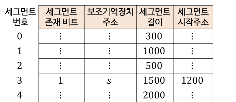 - 세그먼트 번호에 대한 실주소에서의 시작 위치 저장