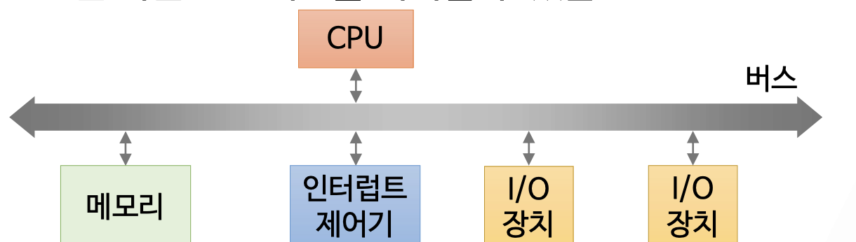 - 인터럽트: 어떤 장치가 다른 장치의 작업을 잠시 중단시키고 자신의 상태를 알리는 기능