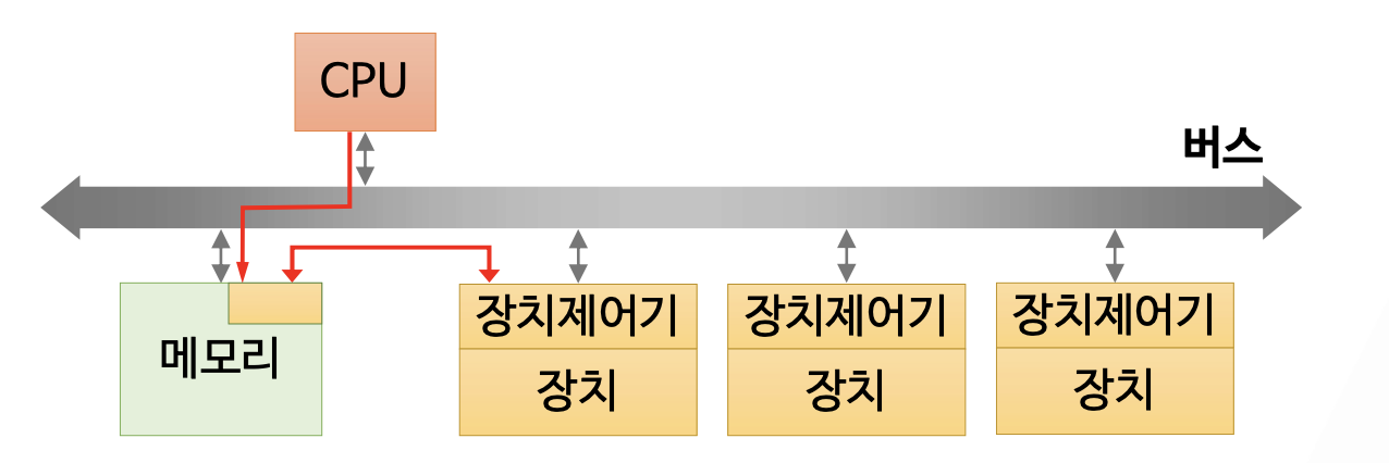 - DMA 제어기를 이용하여 CPU를 통하지 않고 메모리에 직접 접근하여 데이터를 전송하는 방법