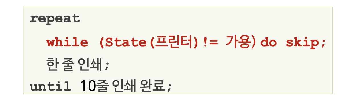 - CPU가 입출력장치의 상태를 지속적으로 확인하며 CPU가 원하는 상태까지 기다림