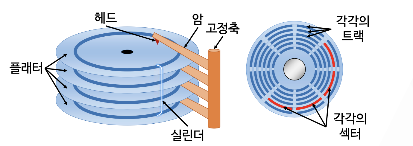 자기 디스크: 자성을 띈 디스크의 표면에 데이터를 쓰거나 읽음