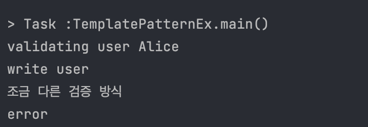 똑같은 템플릿을 통해 진행이 되지만 디테일하게 구현한 내부 메서드가 다르기 때문에 다른 로직을 수행한다.