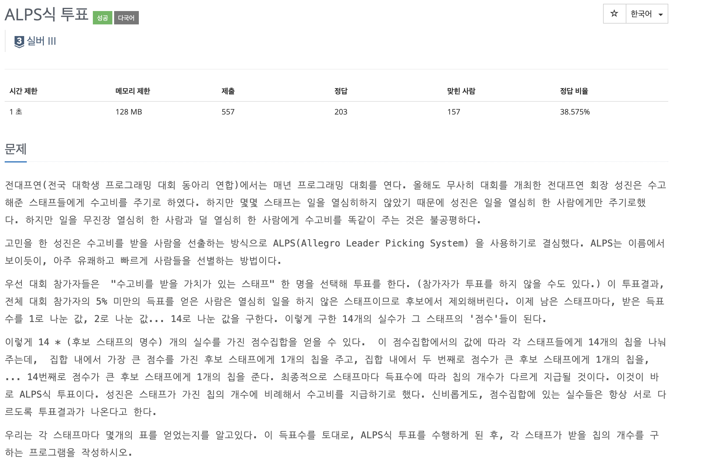 백준 2817 ALPS식 투표 (JAVA 자바 풀이)