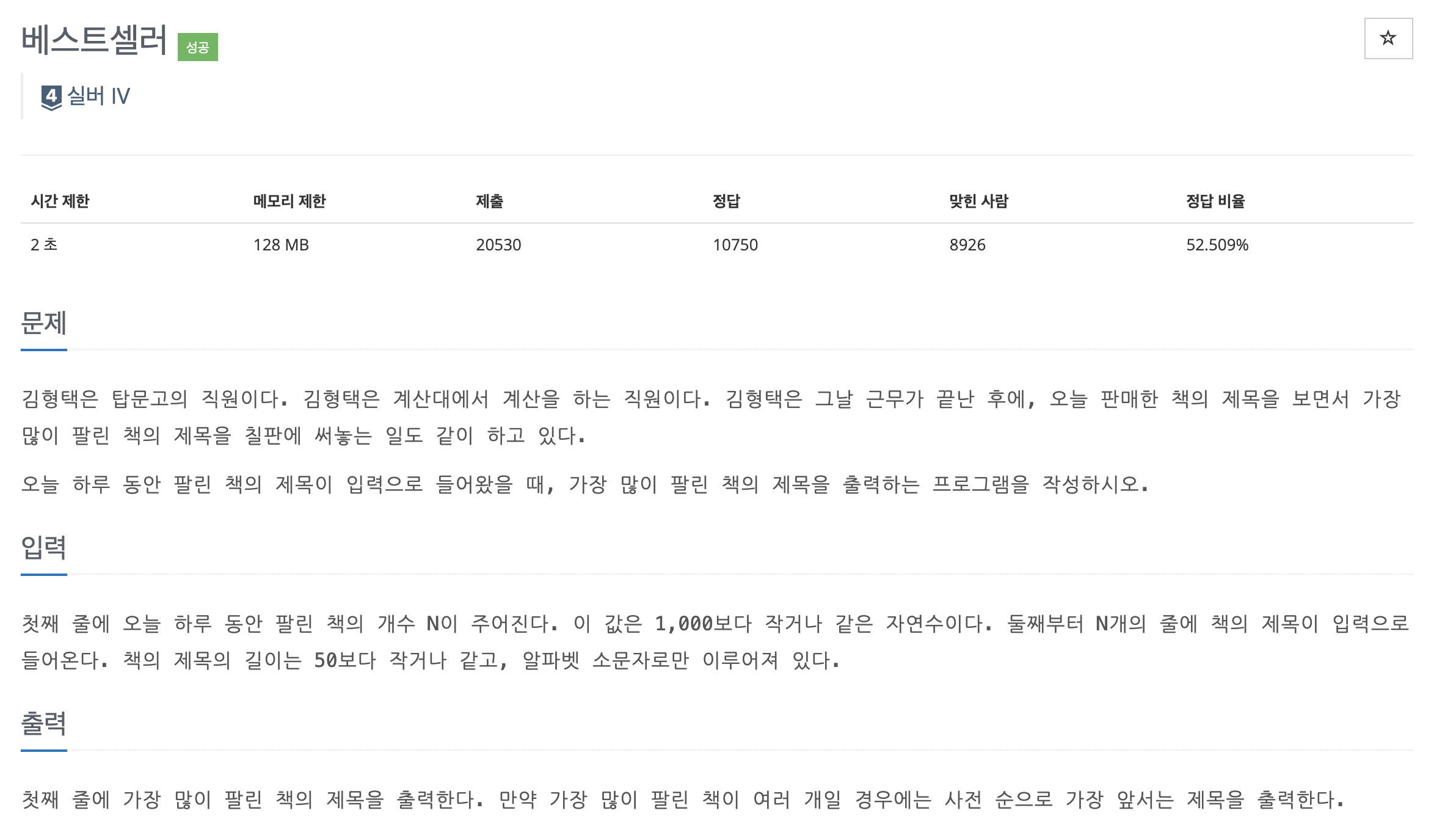 백준 1302 베스트셀러 (JAVA 자바 풀이)