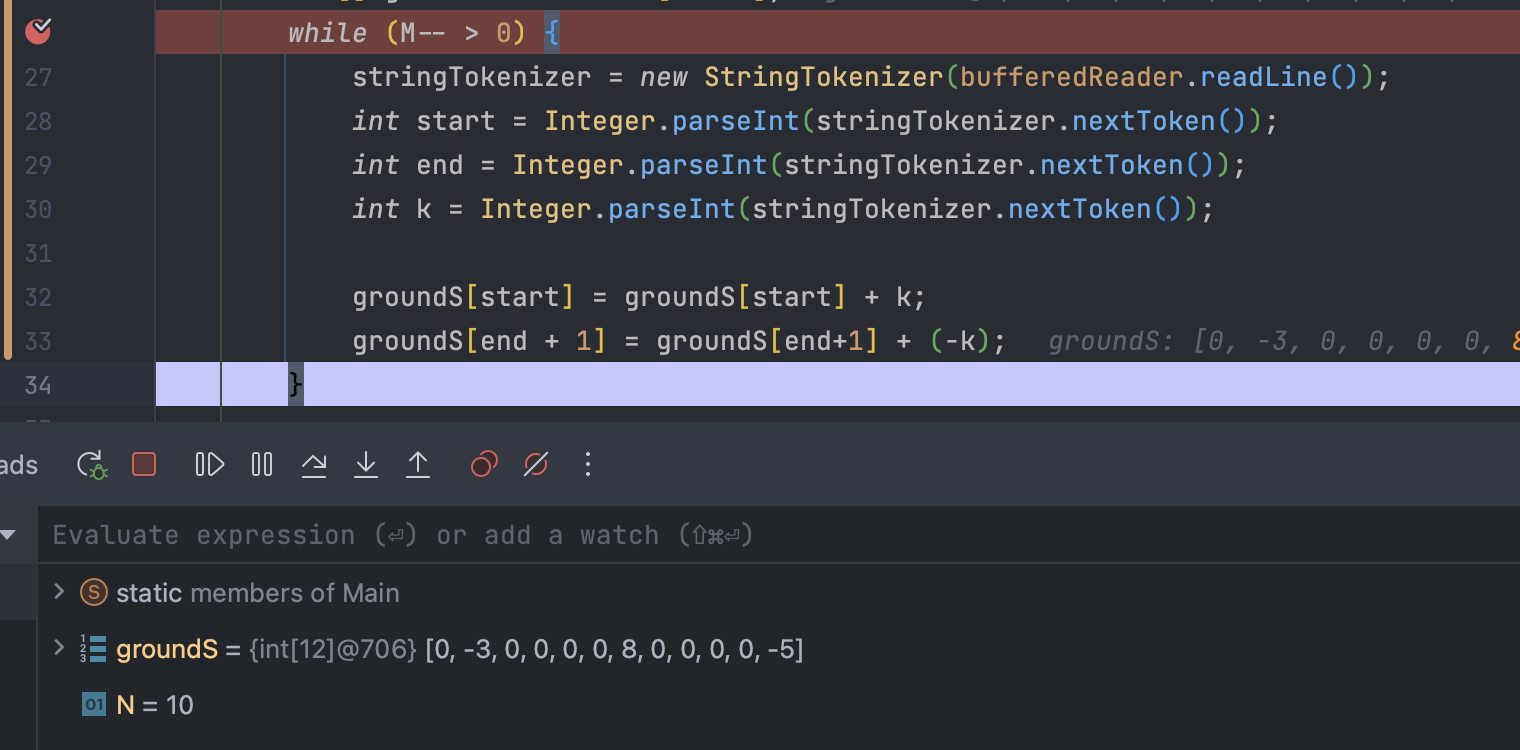만약 누적합이라고 하여, 또 M번의 쿼리를 그대로 모든 배열에 넣는 방식을 사용하면 N이 10만 건으로 주어질 경우 배열의 10만 개의 칸을 순회해야 한다. 즉, 앞에서 모든 계산을 받자마자 그대로 하는 것과 다를 바가 없어진다.