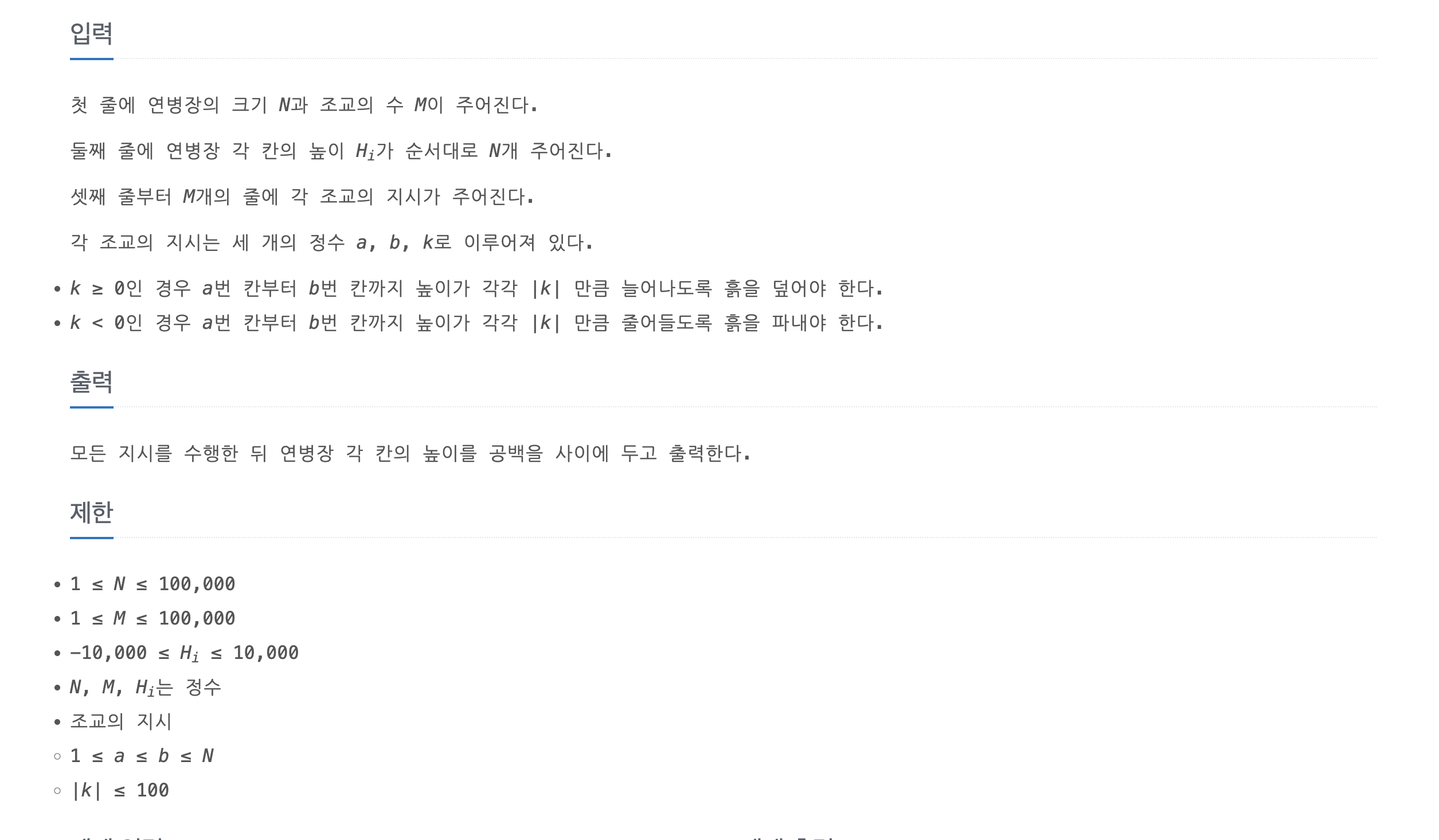 백준 19951 태상이의 훈련소 생활 (JAVA 자바 풀이)