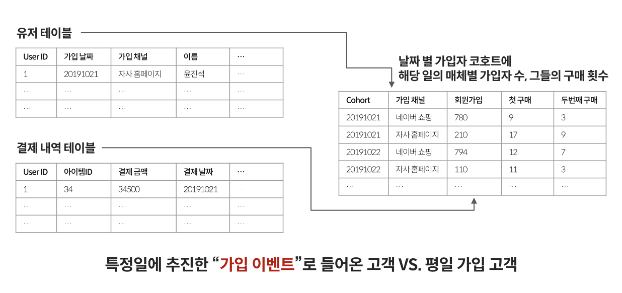 즉, 특정일에 가입 이벤트를 통해 가입한 고객과 일반적인 상황에서 평균적으로 가입한 고객, 둘의 코호트를 분리해서 분석하고자 한다면 어떻게 해야할까?