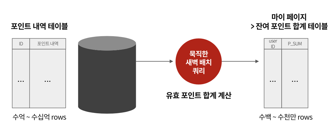 억 단위 이상의 테이블에 대해서, 묵직한 쿼리를 새벽에 배치 쿼리를 실행한다.