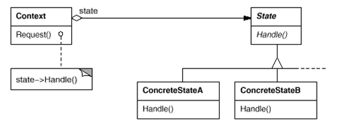- ConcreateState : 각 상태 클래스가 수행할 State에 선언된 메서드를 구현한다.
