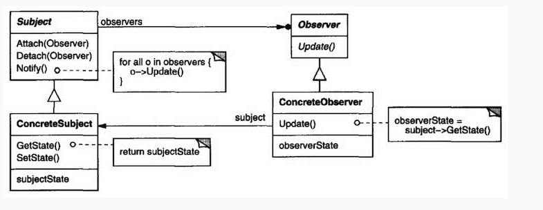 - Subject : Observer를 알고 있는 주체 -> Observer를 더하거나 뺀다.