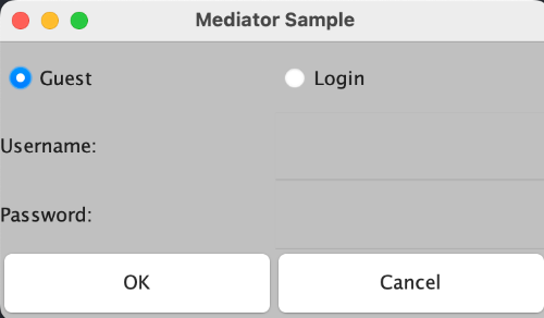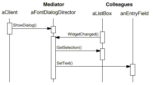 이때 Mediator는 해당 위젯들을 포함하고 있는 Frame이 된다. 이 프레임에서 위젯들을 제어해주는 것이다.