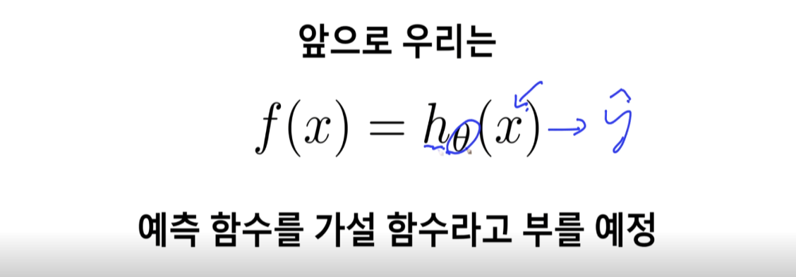 하이퍼대시펑션의 세타는 고정 x를 넣으면 y가 나오는 함수를 가설함수라고 한다.