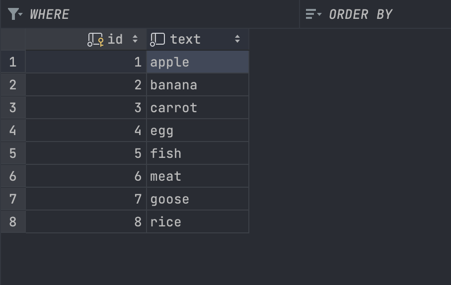 테스트를 위해 다음과 같은 데이터를 저장해둔다.