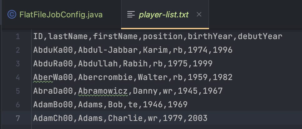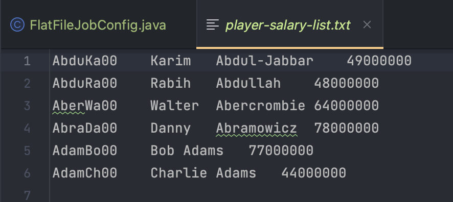 public Step flatFileStep(FlatFileItemReader<PlayerDto> playerFileItemReader,