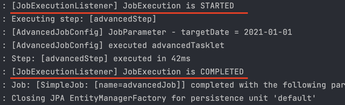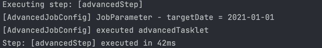 log.info("[AdvancedJobConfig] JobParameter - targetDate = " + targetDate);