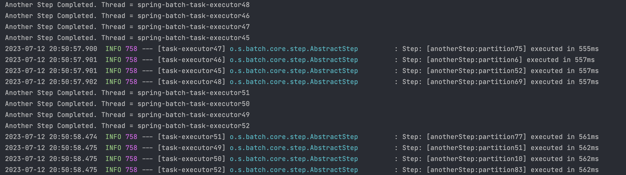 partitionHandler에서는 동시 실행할 스텝을 지정해준다. anotherStep을 활용한다.