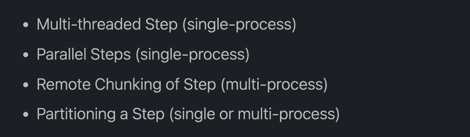 스프링 배치에는 4가지 방법의 병렬처리 방식이 있다.