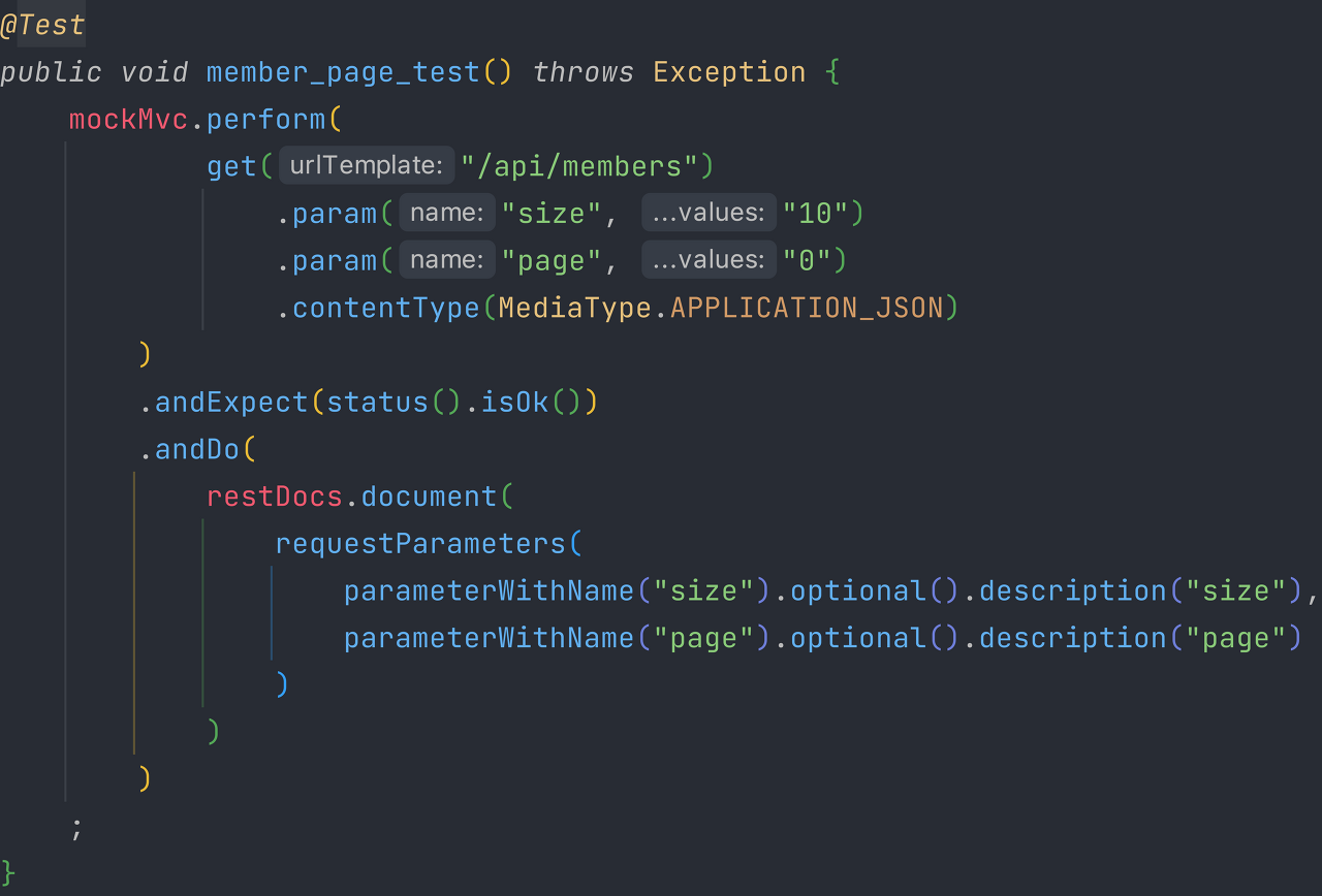 다음과 같은 방식으로 restDoc 스니펫을 생성하는 코드를 작성할 수 있다.