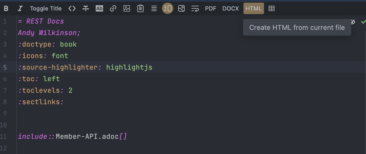 참고로 index.html을 만드는 작업은 그림과 같이 adoc에서 IDE의 도움을 받아 직접 생성도 가능하다.