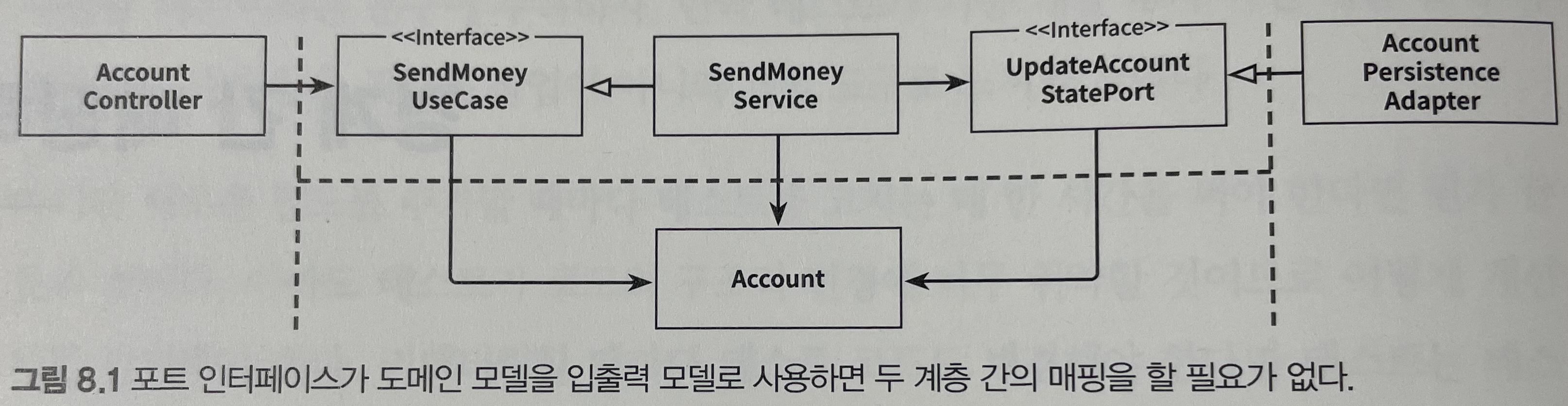 변경 유스케이스를 작업하고 있다면 애플리케이션과 영속성 계층사이에서는 매핑 오버헤드를 줄이고 빠르게 코드를 짜기 위해서 '매핑하지 않기' 전략을 첫 번째 선택지로 둔다. 하지만 애플리케이션 계층에서 영속성 문제를 다뤄야 하게 되면 '양방향 ' 매핑 전략을 바꿔서 영속성 문제를 영속성 계층에 가둘 수 있게 한다.