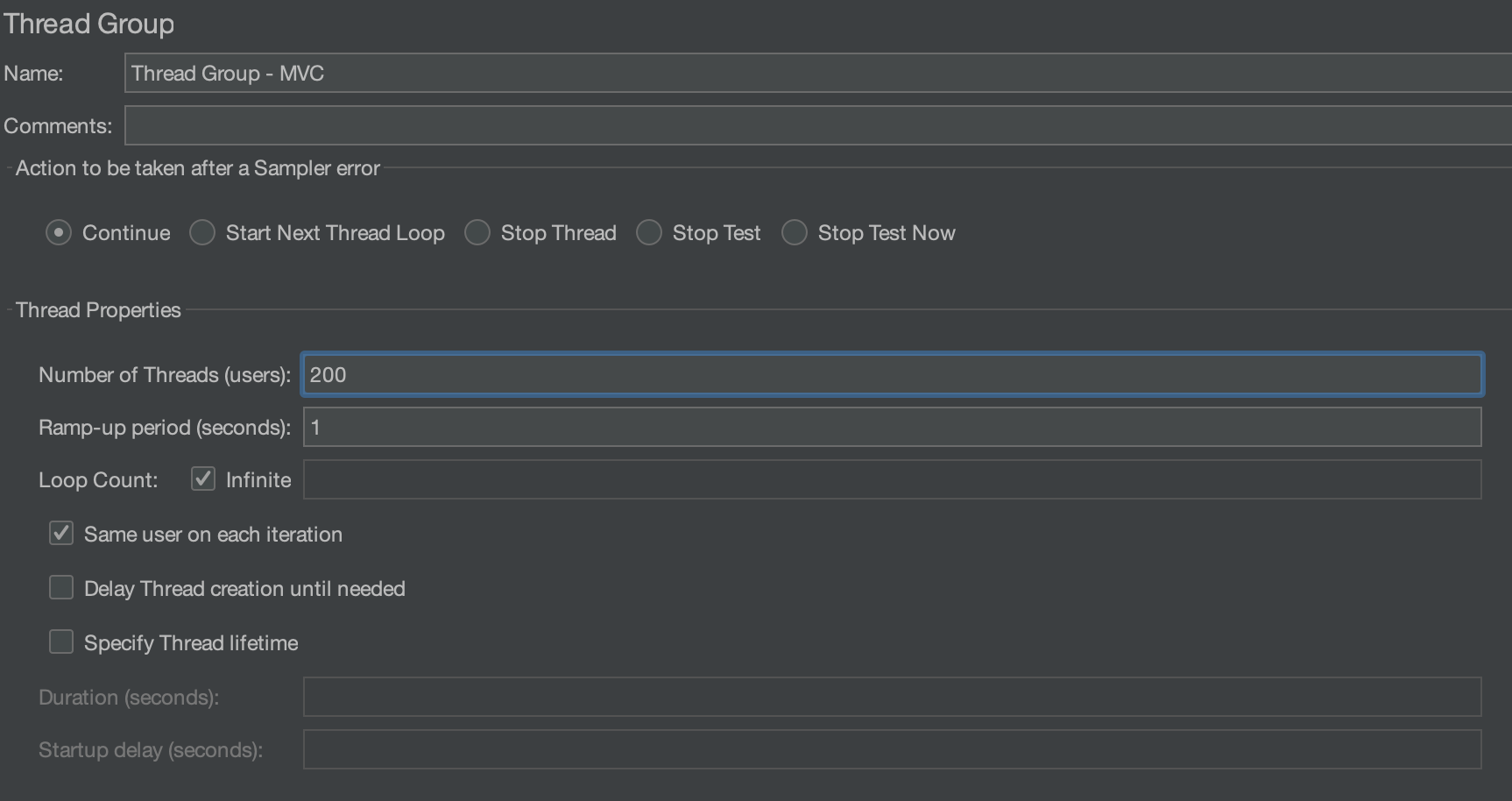 동일하게 200명의 유저로 loop infinite로 실행해보자.