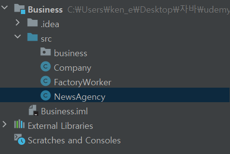 business라는 패키지를 생성해서 Company와 Factoryworker를 넣는다