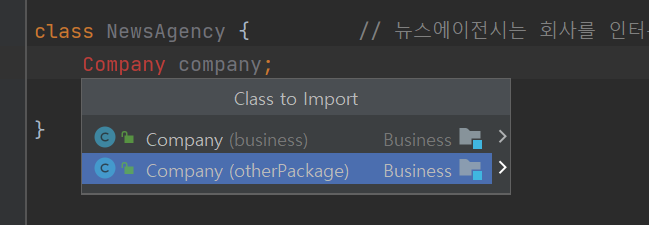만약 다른 package를 만들고 Company라는 이름을 썼다고 가정해보자.