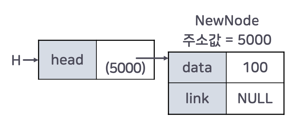 newNode->next = NULL; // 다음 노드를 NULL로 초기화