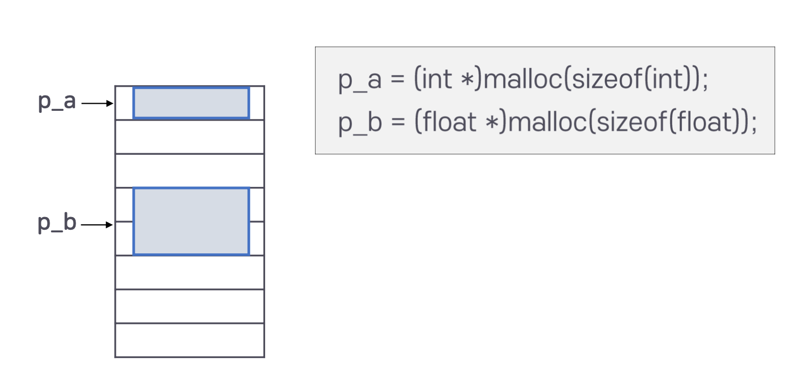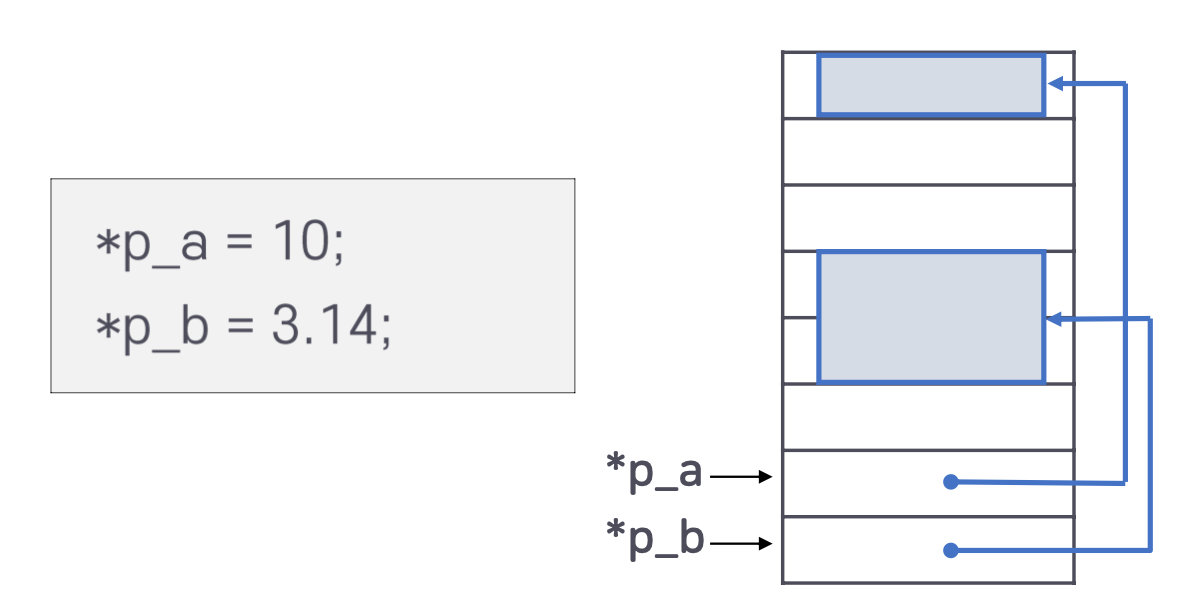 - 포인터 할당: C언어에서는