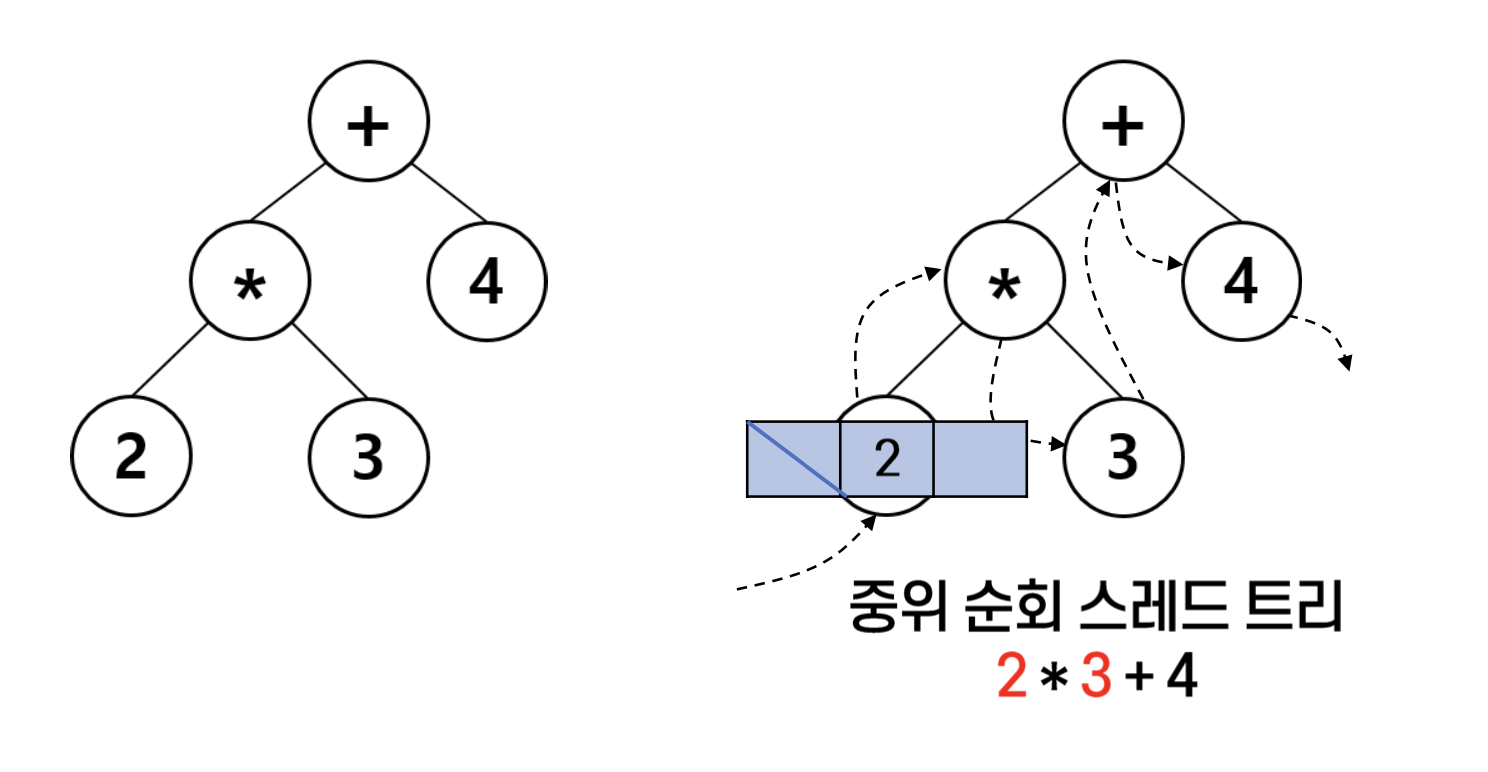 // 여기서 lthread와 rthread는 각각 왼쪽과 오른쪽 포인터가 실제 자식 노드를 가리키는지 아니면 스레드를 가리키는지를 나타내는 불리언 플래그.