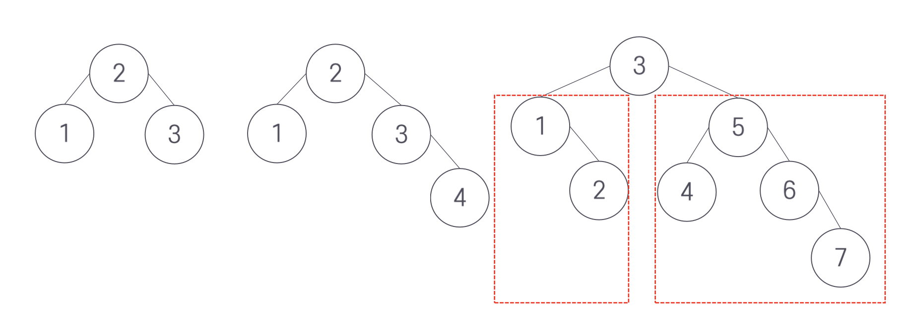 트리의 높이란 노드가 가질 수 있는 가장 높은 레벨에 1을 더한 값이므로, 즉 루트로부터 잎까지 가장 긴 경로 길이를 말한다. 따라서 다음과 같은 BS 트리는 모두 높이가 균형 잡힌 트리라고 볼 수 있다.