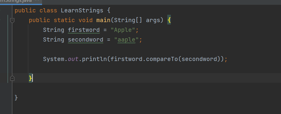 System.out.println(firstword.compareTo(secondword));