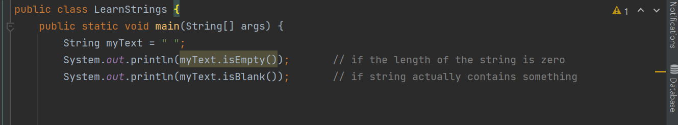 length를 검색하거나 할 때 실제로 있는지를 찾으려면 isBlank를 쓰는 것이 더 사용 용도에 맞다